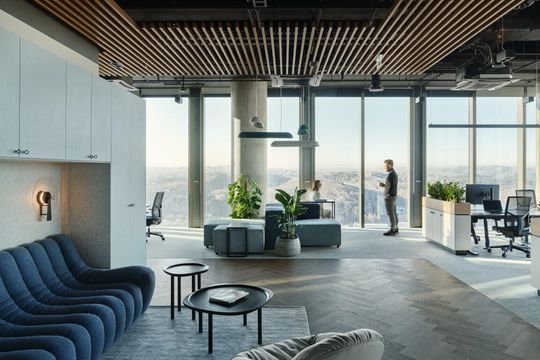 Ideą projektu było nie tylko połączenie widoku z wnętrzem biura, ale także taka aranżacja przestrzeni, aby zapewnićzachwycający widok i dostęp do światła dziennego każdemu pracownikowi – mówi Justyna Biłat, project manager i architekt w Design Anatomy. Na sufitach i podłodze zastosowaliśmy drewno, które wywołuje wrażenie wciągania do wnętrza biura, a dzięki spójności estetycznej projektu i zachowaniu ciągłości linii uzyskaliśmy efekt jednej, dobrze korespondującej ze sobą przestrzeni. Dzięki przeszkleniom między poszczególnymi strefami biuro stanowi jedną całość i sprzyja integracji, nie izolując żadnej ze stref.
