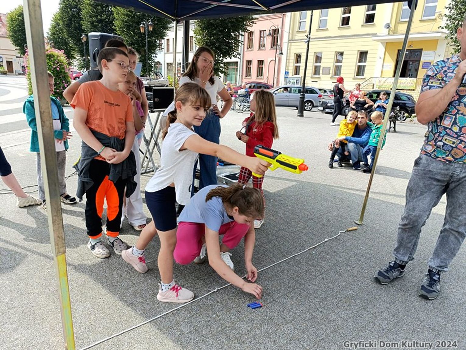 W piątkowe południe (23.08.) na Placu Zwycięstwa, spędziliśmy czas na grach, zabawach i pląsach przy muzyce z animatorem Sebastianem, które zakończyły cykl spotkań w ramach „Wakacji 2024 z GDK”. Serdecznie dziękujemy dzieciom za udział w wakacyjnych propozycjach przygotowanych przez Gryficki Dom Kultury i do zobaczenia.