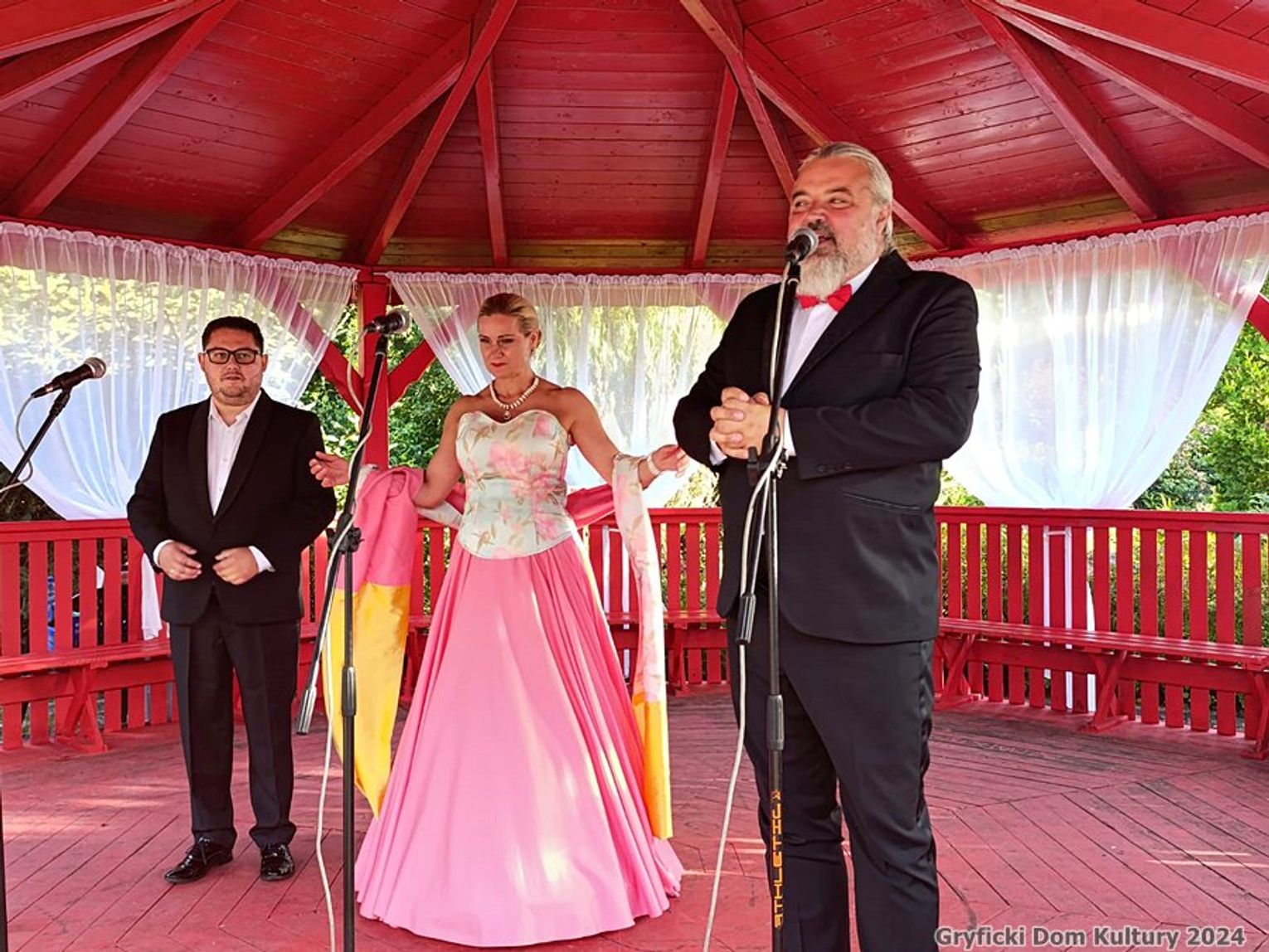 To było niezwykłe popołudnie w Ogrodzie Japońskim, pełne klasyki, elegancji i wrażeń artystycznych, których dostarczyli nam soliści scen operetkowych: Agnieszka Wawrzyniak, Ihor Radvansky i Bartosz Kuczyk. Podróż muzyczna „Od Wiednia do San Remo”, w którą artyści zabrali sympatyków „Gryfickiego Lata Muzycznego”, wypełniona została przebojami, zarówno znanych kompozytorów tworzących w Austrii, jak i przebojami włoskimi, znanymi słuchaczom z festiwali w San Remo.