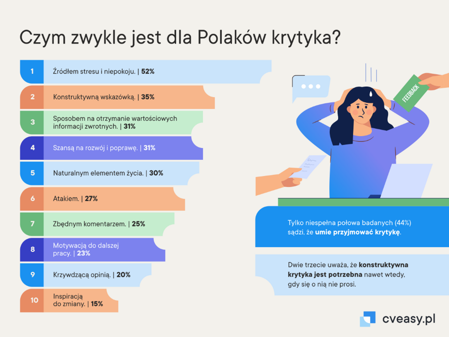 Więcej o tym, jak radzimy sobie z krytyką, można przeczytać w publikacji na blogu CVeasy.pl.