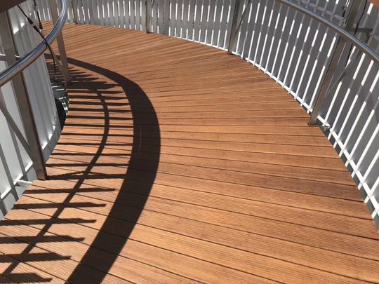 - Tarasowe deski Dasso CTECH z JAF Polska zostały wybrane przez Zarząd Dróg Miejskich w Warszawie do wykończenia kładki pieszo-rowerowej przez Wisłę. Do projektu użyto ryflowane bambusowe deski tarasowe Dasso CTECH 20x137 mm w wariancie kolorystycznym Cognac. Do podkonstrukcji posłużyły legary bambusowe XTR. Z desek powstały ławki oraz siedziska wzdłuż kładki — informuje Piotr Lisowski z JAF Polska.