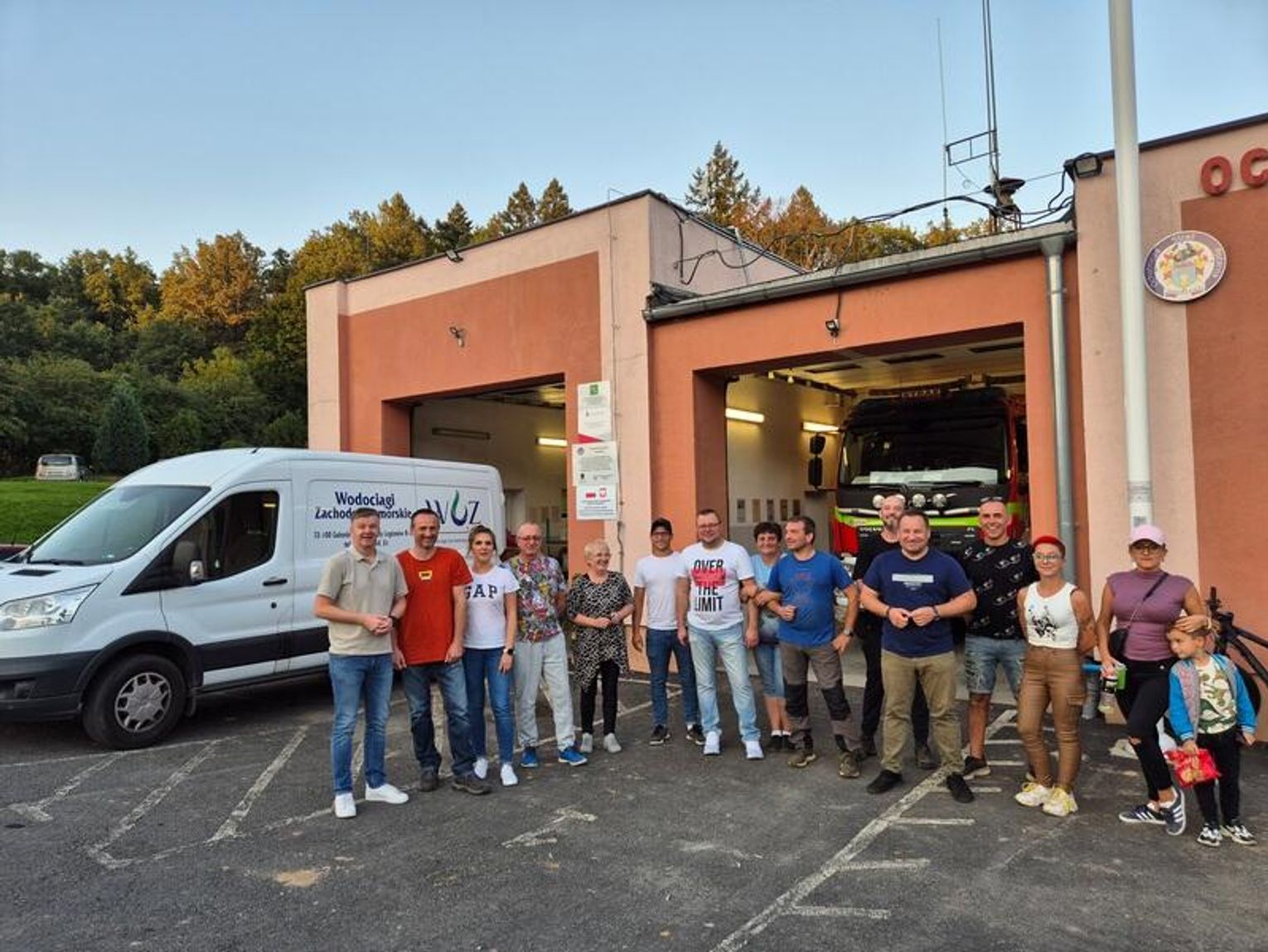 Na zdjęciu strażacy z zalanej przez powódź Świerzawy z wolontariuszami z Pomorza Zachodniego.