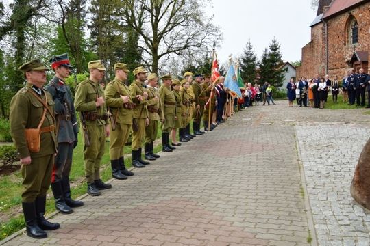 Uroczystość rozpoczęła się od wciągnięcia flagi na maszt i odśpiewania „Mazurka Dąbrowskiego”. Odsłonięcia pomnika dokonał ks. kan. Kazimierz Olejniczak i Wójt Gminy Karnice Lech Puzdrowski. Po poświeceniu pomnika w swoim przemówieniu Wójt Gminy Karnice przypomniał uczestnikom uroczystości, że Polska zniknęła z mapy Europy. Było to najtragiczniejsze wydarzenie w jej dziejach. Utrata Ojczyzny zrodziła wysiłki na rzecz odzyskania niepodległości. Następujące po sobie okresy trudnych dziejów Polski odzwierciedlają siłę i wolę walki Polaków za Ojczyznę. W czasie apelu poległych Grupa Rekonstrukcji Historycznej „Nałęcz” z Trzebiatowa przywołała na pamięć Polaków poległych w czasie I i II wojny światowej, zesłanych na Syberię i do Kazachstanu, zamordowanych w niemieckich nazistowskich obozach koncentracyjnych, zamordowanych na Wołyniu, zamordowanych w Katyniu, Żołnierzach Wyklętych, zamordowanych w okresie stanu wojennego, 96 osobach, które zginęły w katastrofie smoleńskiej, pułkownika Kazimierza Kosiarskiego. Po salwie honorowej i złożeniu kwiatów poczty sztandarowe i wszyscy uczestnicy uroczystości udali się do kościoła na Mszę św. sprawowaną przez ks. dziekana Wojciecha Helaka i ks. kan. Kazimierza Olejniczaka w intencji pułkownika Kazimierza Kosiarskiego, Polaków wywiezionych na Syberię i do Kazachstanu, więźniów obozów koncentracyjnych.