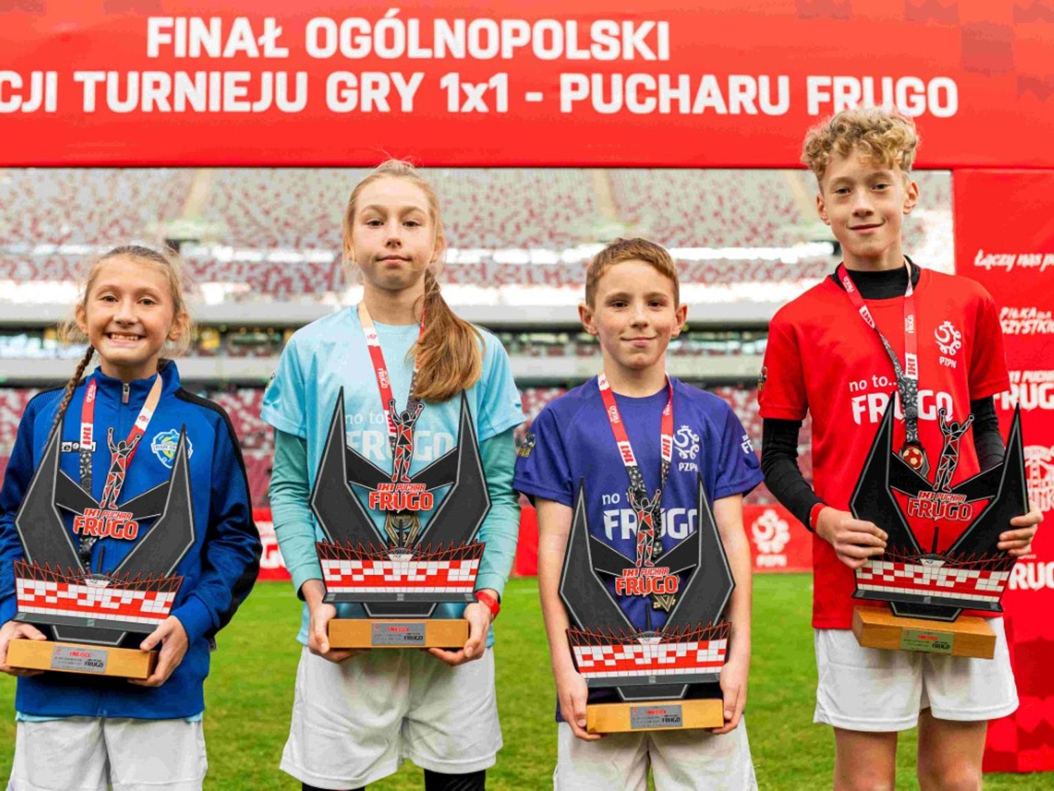 Spośród 64 finalistów finału ogólnopolskiego II edycji Turnieju Gry 1x1 – Pucharu Frugo zwycięzcami zostali: Zofia Kołodziej (rocznik 2014), Zuzanna Żak (rocznik 2013), Aleksander Bibułowicz (rocznik 2014) oraz Aleksander Godziński (rocznik 2013). W ubiegłym roku Zuzanna Żak również zwyciężyła w turnieju. – II edycję Turnieju Gry 1x1 – Pucharu Frugo oceniam bardzo pozytywnie, zaczynając od najniższego szczebla eliminacji, aż po finały, które odbyły się na PGE Narodowym w Warszawie. Organizacja tego przedsięwzięcia stała na wysokim poziomie. Sam finał ogólnopolski to niesamowite wydarzenie dla zawodniczek i zawodników – udział w meczu reprezentacji Polski oraz co najważniejsze, na drugi dzień występ na PGE Narodowym – to nagroda za ciężką pracę na treningach oraz zaszczyt, jakiego nie każdy może dostąpić. Jestem bardzo zadowolony z występu Zuzi i przede wszystkim z jej podejścia do tego turnieju. Zuzia jest bardzo świadomą zawodniczką i wiedziała, że stać ją na „obronę tytułu”, jeśli tylko odpowiednio podejdzie mentalnie do rywalizacji. Jestem dumny, że mogłem towarzyszyć jej podczas świetnego występu – mówi trener Zuzanny, Antoni Polański.