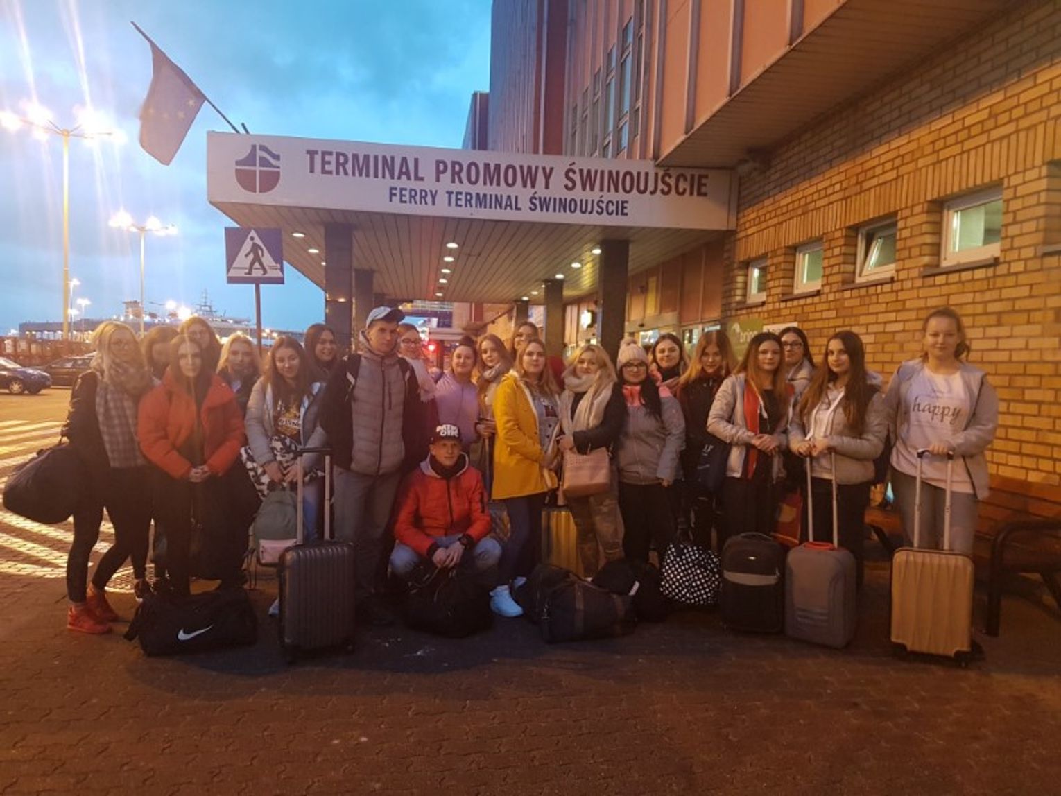 Po przyjeździe do Świnoujścia, zaokrętowaniu na pokładzie promu Scania uczestnicy odbyli wizytę zawodoznawczą obejmującą m.in. zwiedzanie mostku kapitańskiego z możliwością przyglądania się pracy załogi podczas wychodzenia promu w morze.