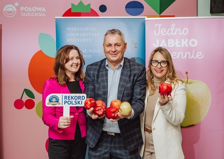 „Zrobiliśmy dwie wielkie rzeczy. Ustanowiliśmy Rekord Polski w jedzeniu różnych odmian jabłek. Cieszył się on wielką popularnością wśród pracowników, studentów, ale i również władz uczelni. A druga sprawa to to, że mówimy głośno o cukrzycy, o problemie, ale i o rozwiązaniu, które mamy w zasięgu ręki. Dobre odżywianie może być lekarstwem w profilaktyce cukrzycy. Jedno jabłko jest wielkości dłoni i może czynić cuda. Osobiście cieszę się, bo emocje z tym związane są dla mnie ogromne i ważne” - mówiła dr hab. n. o zdr. Beata Sińska, p.o. kierownika Zakładu Żywienia Człowieka Wydział Nauk o Zdrowiu WUM.