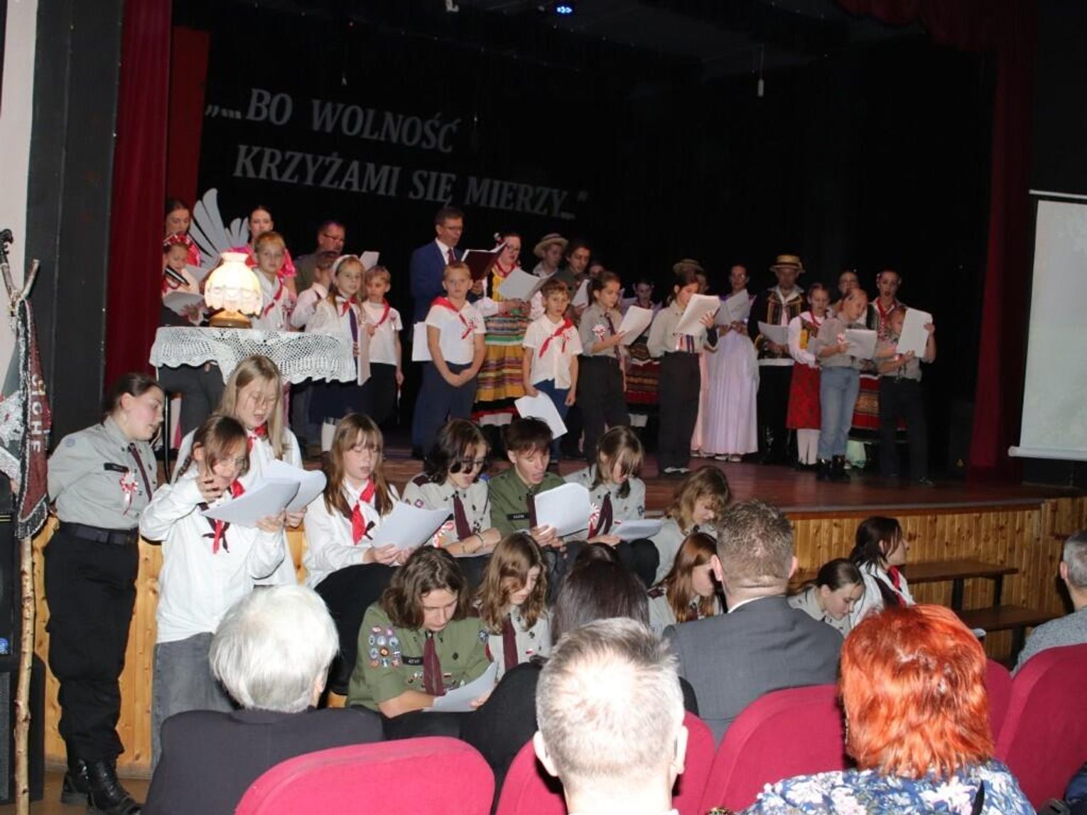 Poprzez kanon najpiękniejszych pieśni patriotycznych i żołnierskich poprowadził mistrz ceremonii Janusz Nowak który nie tylko zachęcał ale i wspierał publiczność we wspólnym śpiewaniu budzących silne emocje utworów których słowa przewijały się na telebimie a takie patriotyczne „obrazy pieśnią malowane” na długo pozostaną wszystkim w pamięci.