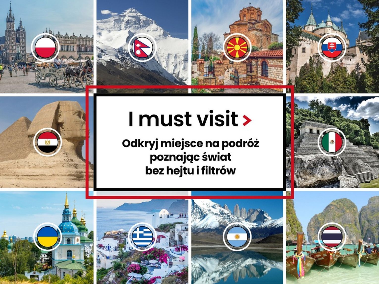 I must visit to międzynarodowy portal dla miłośników podróży, dostępny pod adresem https://imustvisit.com. Bazuje on na krótkich filmach dodawanych przez użytkowników, które następnie podlegają moderacji oraz ewentualnej edycji, w celu zapewnienia możliwie jak najwyższej ich jakości. To właśnie autentyczne i pozytywne filmy, wraz z różnymi ciekawostkami, stanowią tutaj inspirację do wyboru niezwykłych miejsc i atrakcji na podróż. Każdy film przypisywany jest ponadto do konkretnego miejsca, w tym do państwa, regionu, miasta, a nawet obiektu (takiego jak muzeum lub zabytek), wraz z konkretną lokalizacją na mapie. Wszystko to pozwala na stworzenie wartościowego miejsca wolnego od hejtu, negatywnych emocji oraz obraźliwych komentarzy. Na portalu dodanych zostało już ponad 2 000 filmów z około 60 państw, w tym z Polski, Nepalu, USA, Brazylii, Tonga i Słowacji. Wśród odwiedzających portal znalazły się już osoby z ponad 120 państw, zaś pokazywane miejsca otrzymały ponad 50 000 oznaczeń jako "Muszę odwiedzić". Warto dodać, że każdy zarejestrowany użytkownik może bezpłatnie tworzyć swój własny pamiętnik z podróży, a także może wziąć udział w konkursie I must visit Award.