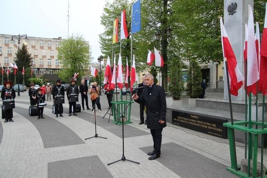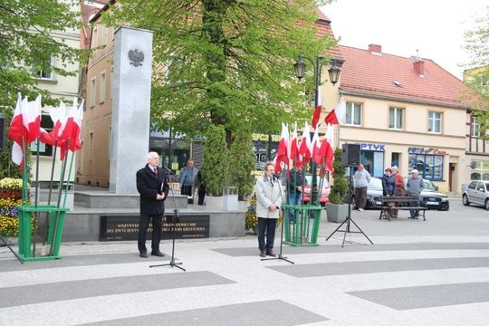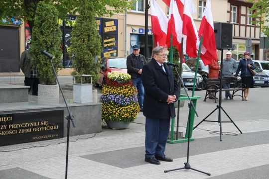Po mszy przedstawiciele samorządu lokalnego Powiatu i Gminy Gryfice, członkowie Związku Kombatantów RP i Byłych Więźniów Politycznych, Związku Żołnierzy Wojska Polskiego, organizacji społecznych, placówek oświatowych oraz służb mundurowych, w asyście pocztów sztandarowych i prowadzeni przez Młodzieżową Orkiestrę Dętą "Red Swing Low" przemaszerowali na Plac Zwycięstwa. Po okolicznościowych wystąpieniach starosty gryfickiego Ryszarda Chmielowicza i burmistrza Gryfic Andrzeja Szczygła złożono wiązanki kwiatów dla uhonorowania pamięci osób, które oddały życie w walce o wolną Polskę.